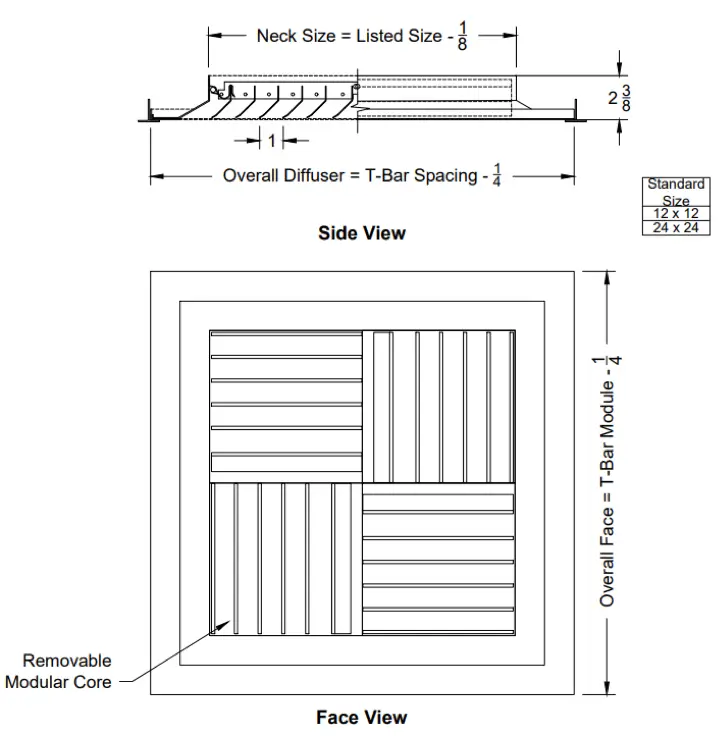 Louvered Face Diffusers are engineered to deliver efficient air distribution in environments that require large volumes of air with minimal noise and pressure drops. These diffusers are ideal for a variety of commercial and industrial HVAC applications, providing both functionality and aesthetic appeal. Designed with versatility and performance in mind, they offer a reliable solution for enhancing airflow efficiency in large spaces.